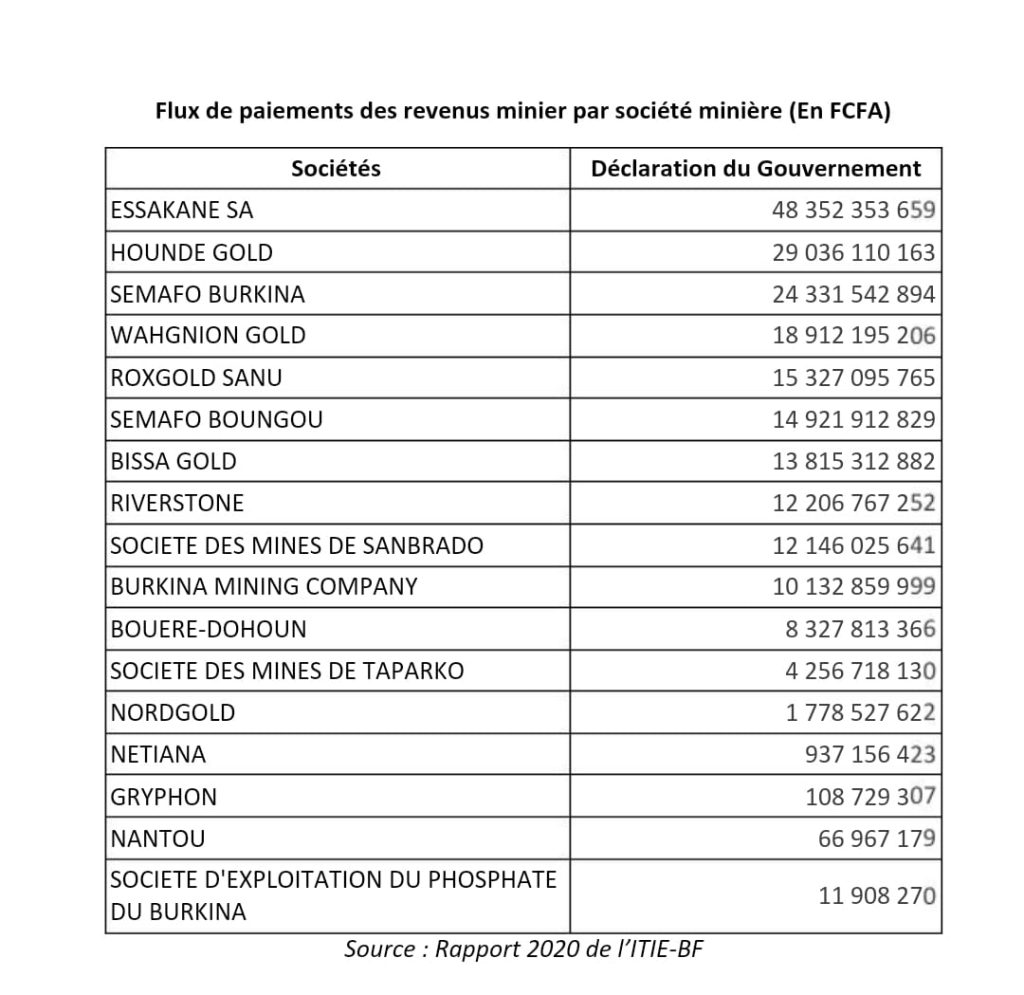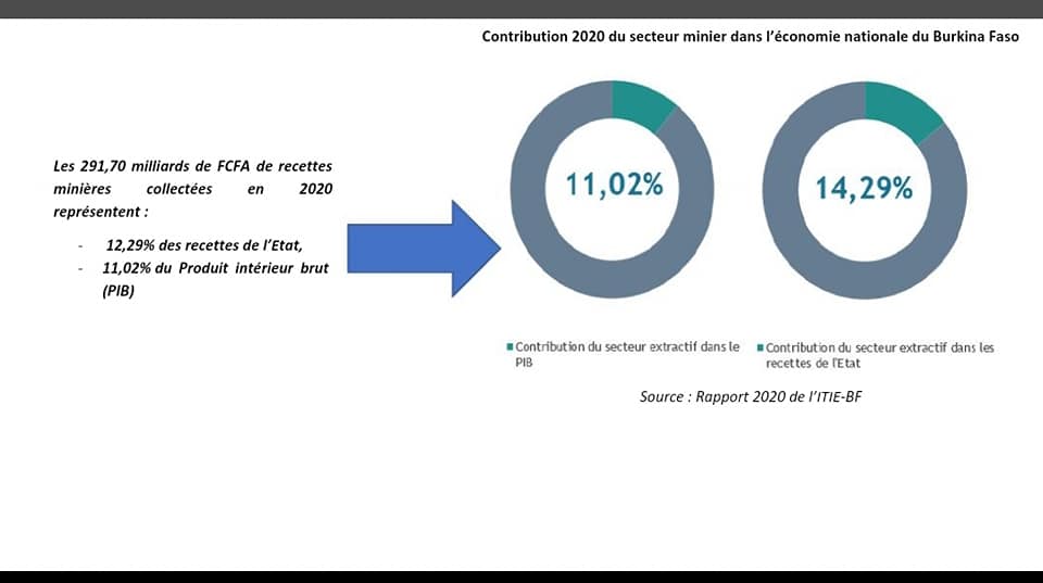 En 2020, le secteur minier a rapporté au budget de l’Etat, la somme de 291,70 milliards de FCFA selon le rapport 2020 de l’Initiative pour la Transparence dans les Industries Extractives au Burkina Faso (ITIE-BF).