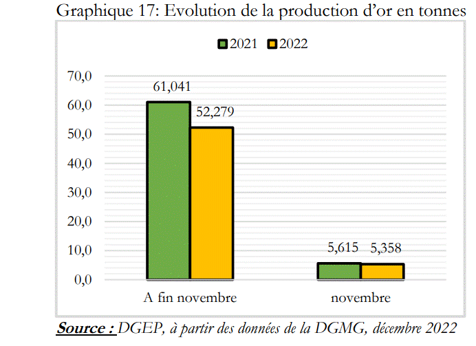 - La production d’or a augmenté de 3,6% entre octobre et novembre 2022