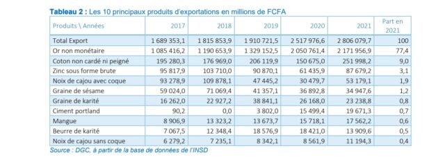 - L’or représente 77,4% des exportations du Burkina Faso en 2021