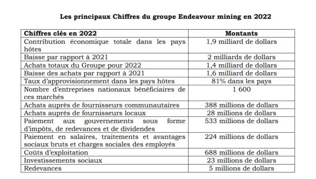 Sébastien de Montessus, Président Directeur Général, a commenté : « En 2022, nous avons continué à faire des progrès significatifs sur notre stratégie environnementaux, sociaux et de gouvernance, formulée il y a quelques années à la suite d’une vaste consultation auprès de diverses parties prenantes, et guidée par les objectifs de développement durable des Nations Unies. De plus, nous sommes heureux de la reconnaissance que nos efforts ont reçue de l’extérieur de l’entreprise, avec des notes de premier plan dans le secteur, reflétant l’impact positif que notre entreprise peut avoir dans les régions où nous opérons. En 2022, notre contribution économique totale aux pays hôtes s’élevait à plus de 1,9 milliard de dollars (environ 1 .140 milliards FCFA), comprenant les achats locaux, les salaires, les impôts, les redevances, les dividendes et d’autres contributions aux gouvernements. En outre, pour contribuer davantage au développement socio-économique de la région, nous avons investi de manière significative dans des initiatives locales visant à améliorer l’accès à l’eau, à l’éducation et aux établissements de santé au sein de nos communautés locales et dans toute la région. Bon nombre de nos initiatives sont menées par l’intermédiaire de la Fondation Endeavour, que nous avons créée pour mettre en œuvre des projets au-delà de nos mines et qui sont axées sur les niveaux régionaux, nationaux et transfrontaliers. Au cours de l’année 2022, nous avons lancé un certain nombre d’initiatives, allant d’un investissement dans la Grande Muraille Verte, qui a l’ambition de planter un mur d’arbres à travers le Sahel, en partenariat avec l’Agence sénégalaise de reboisement et la Grande Muraille Verte, des projets éducatifs pour développer le futur vivier de talents, le financement de bourses d’études, de stages universitaires et de bourses, ainsi que la formation professionnelle des jeunes afin d’améliorer leur employabilité et leurs opportunités dans la vie.