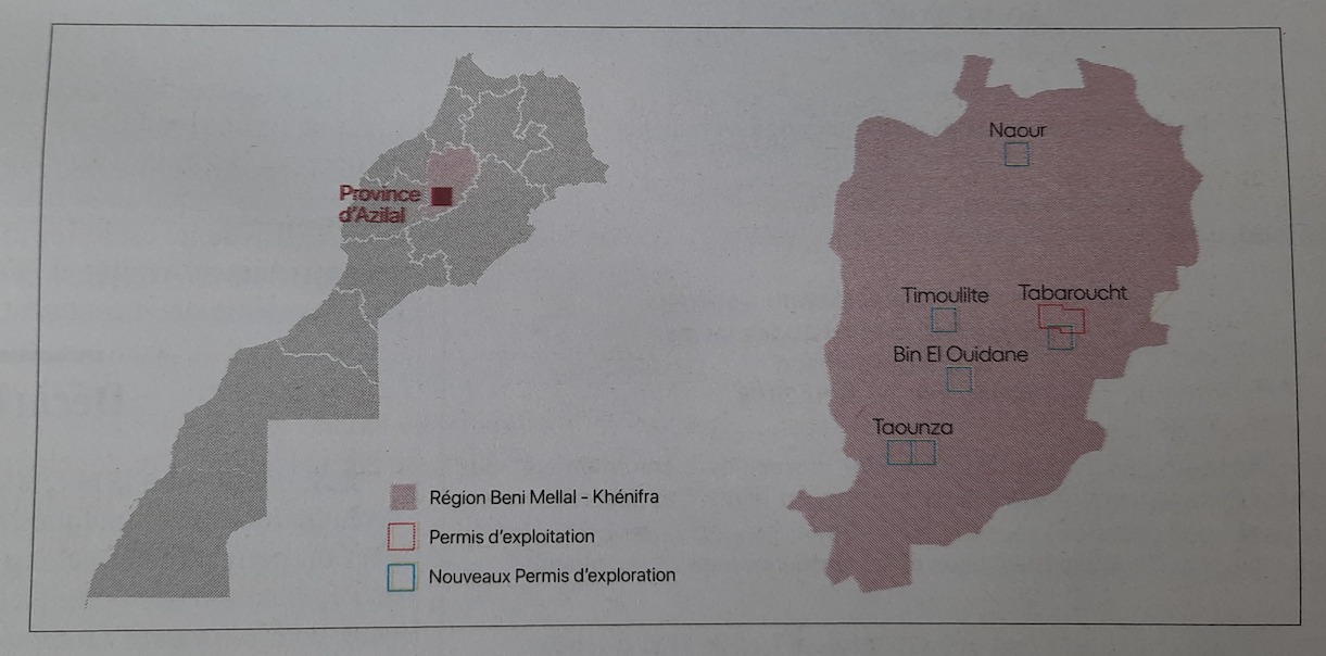 Le 16 mai 2023, la Compagnie Minière de Touissit (CMT) a informé qu’elle s’est vue attribuer 6 nouveaux permis de recherches pour toutes substances, d’une superficie totale de 96 km2, situés dans la province d’Azilal.