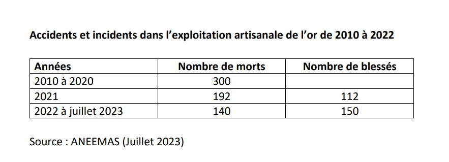 L’exploitation artisanale est le lieu des accidents et des incidents. Entre 2010 et 2023, il a été enregistré 632 morts principalement par les éboulements, les inondations, les explosions, etc. sur les sites. Si 300 morts ont été enregistrés entre 2010 et 2020, en 2021, on a recensé 192 morts et 112 blessés. En 2022, c’est 140 morts et 150 blessés enregistrés. Le nombre élevé de victimes en 2021, s’explique par l’assassinat de 132 personnes sur le site de Solhan. Sur ce site, 76 blessés ont été enregistrés. Quant au nombre élevé de victimes en 2022, elle s’explique par l’explosion intervenue sur le site de Gongombiro ayant causé la mort de 63 personnes. Chiffres largement en deçà de la réalité, prévient Viviane Yaméogo.