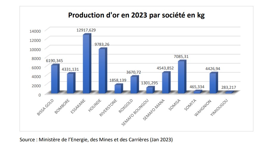 En 2023, Le Burkina Faso a enregistré 12 sociétés minières industrielles en production sur son sol. Toutes ces sociétés ont produit 56,857 tonnes l’or, selon les données du ministère de l’Energie, des Mines et des Carrières. Une production en baisse de 0,788 tonne par rapport à 2022 où on a enregistré 57,645 tonnes d’or.