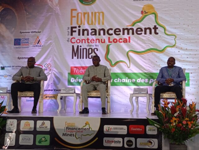 Pour sa part, le ministre de l’Energie, des Mines et des Carrières, Yacouba Zabré, a fait savoir que le financement du contenu local est un des défis majeurs qu’il faudrait relever, malgré les textes adoptés par le gouvernement pour encadrer le secteur. Il note par ailleurs qu’il s’agira pour les acteurs, d’examiner les produits financiers existants pour le financement d’un secteur aussi capitalistique que l’exploitation minière et d’explorer des solutions innovantes. Le ministre burkinabè des mines a formulé ses attentes par rapport au forum : « Nous fondons beaucoup d’espoir sur son déroulée en ce sens qu’il va aborder avec l’ensemble des acteurs, une question importante qui est le financement du contenu local, un des défis majeurs qu’il faut relever après l’ensemble des textes que le gouvernement a pris pour encadrer le secteur. », a fait-il fait savoir. Il a jouté : « Nous attendons qu’il ait des partages d’expérience, des recommandations assez fortes qui permettra de donner du contenu au contenu local ».