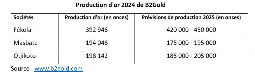 • Fékola a produit la moitié de l’or (48%) de l’or de la société B2Gold