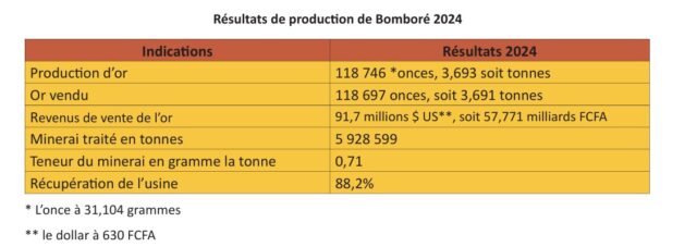 Orezone Bomboré : Une production de 3,693 tonnes d’or en 2024