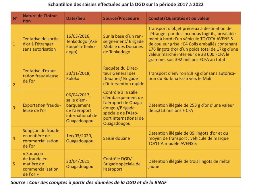 Le Réseau national de lutte anti-corruption (REN-LAC) dans sa revue du 21 octobre 2021 estime pour sa part à plus de 300 milliards CFA, les pertes en recettes budgétaires consécutives à des fausses facturations dans le secteur minier que l’Etat burkinabè a enregistré entre 2014 et 2019. Le secteur minier figure donc parmi les plus vulnérables aux flux financiers illicites, eu égard à l’insuffisance des dispositifs de surveillance, de transformation, de transport, de stockage, de commercialisation et de communication.