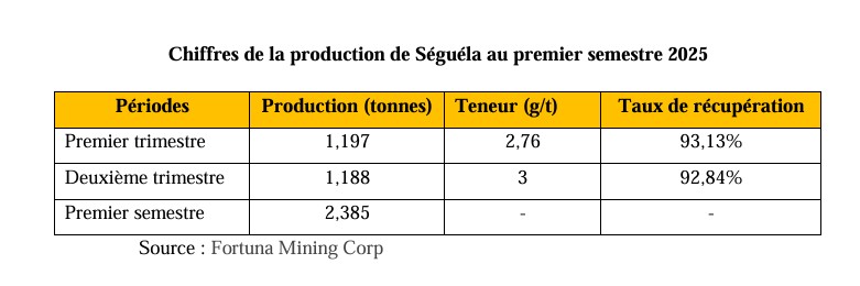 Fortuna Mining Corp a annoncé le 9 juillet 2025, les résultats de production du deuxième trimestre et du premier semestre 2025 de ses trois mines en exploitation dont celle de Séguéla en Côte d’Ivoire.