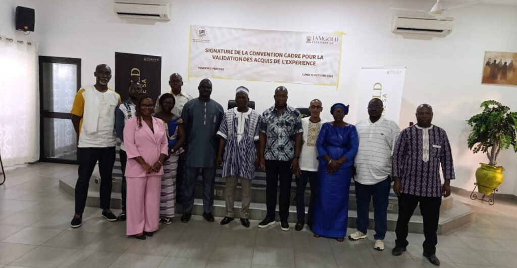 La société minière IAMGOLD Essakane SA et la Direction générale des examens, de la certification et des concours (DGECC) ont unis leur force pour le renforcement du capital humain. Une convention signée ce lundi 13 octobre 2025 à Ouagadougou par Tidiane Barry, Vice-président Afrique de l’Ouest et Directeur général de IAMGOLD Essakane SA et Bonaventure Meda, représentant la DGECC vise à mettre en œuvre un programme de validation des acquis de l’expérience au bénéfice des employés de la mine.