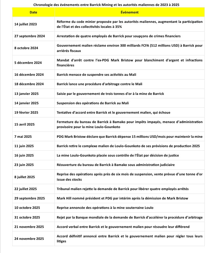 En rappel, le 31 octobre 2025, l’organe d’arbitrage de la Banque mondiale a rejeté la demande de Barrick d’accélérer la procédure d’arbitrage international contre le Mali