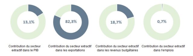 Les chiffres des exportations révèlent une forte dépendance de l’économie nationale au secteur extractif, dont la contribution aux exportations a atteint 69,56 % en 2024 contre 60,02% en 2023. La participation du secteur au Produit intérieur brut (PIB) en 2024 est de 15,08%, en hausse par rapport à 2023 (13,66%).
