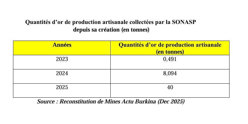 Mais depuis la mise en place de la SONASP, la tendance s’est inversée. Cette production est passée à 8,094 tonnes d’or en 2024 et à 40 tonnes en fin 2025.