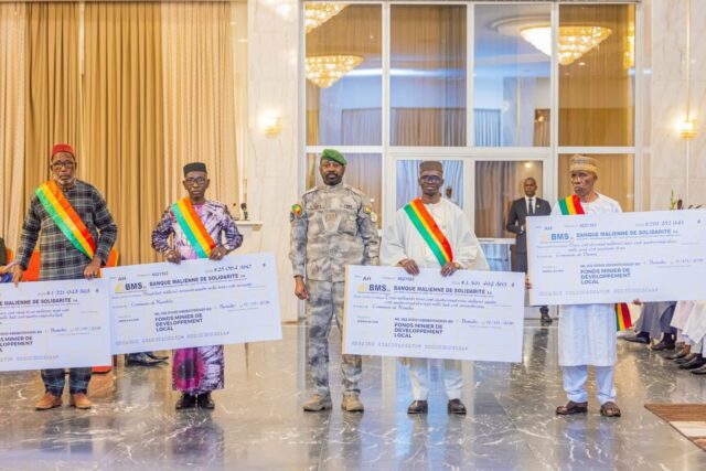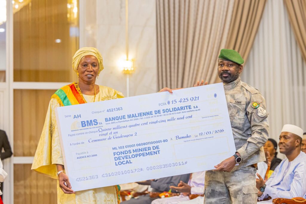 Le Président de la Transition malienne, le Général d’Armée Assimi GOÏTA, a procédé à la remise symbolique des chèques géants du Fonds minier de développement local à 9 communes sélectionnées, ce jeudi 12 mars 2026. Selon le gouvernement malien qui a publié l’information, le Président de la Transition a saisi l’occasion pour féliciter le Gouvernement pour avoir mis en œuvre cette recommandation des Assises nationales de la Refondation.