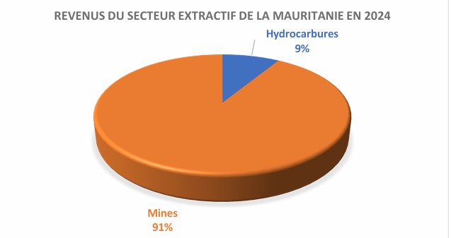 Les recettes minières ont représenté 21,809 milliards MRU, soit 315 milliards FCFA dans le budget de l’État de la Mauritanie en 2024. Ces recettes représentent (91,43%) des revenus extractifs du pays en 2024. Parmi les principaux contributeurs, la Société Nationale Industrielle et Minière (SNIM) dont la contribution représente 58,84 % ; Tasiast Mauritanie Limited SA (TMLSA) avec 37,25 % et la Mauritania Copper Mines SA (MCM) avec 3,65 %.